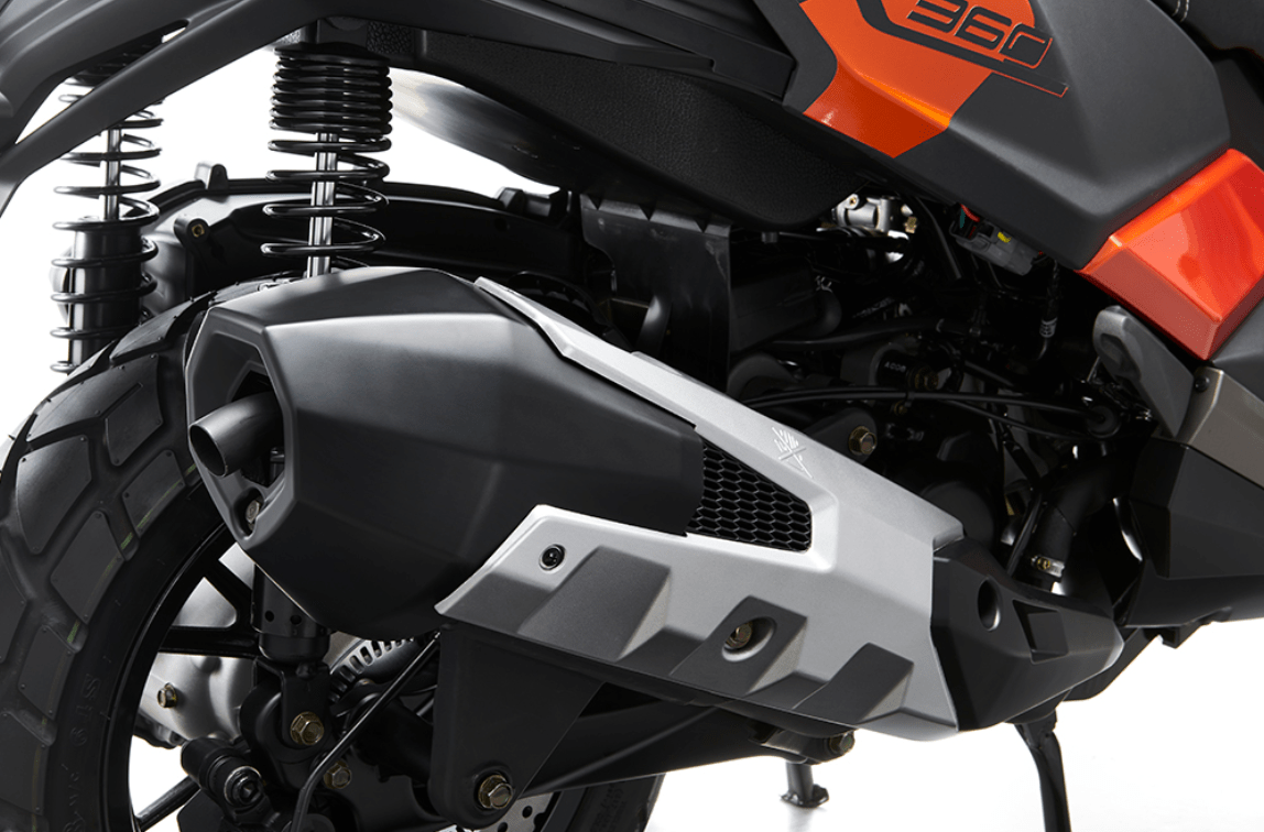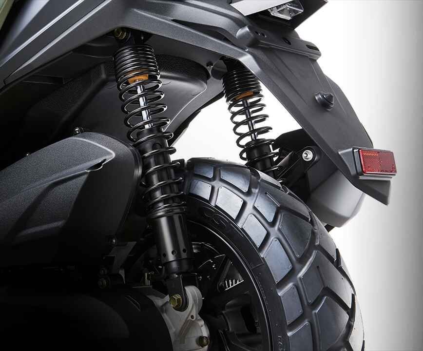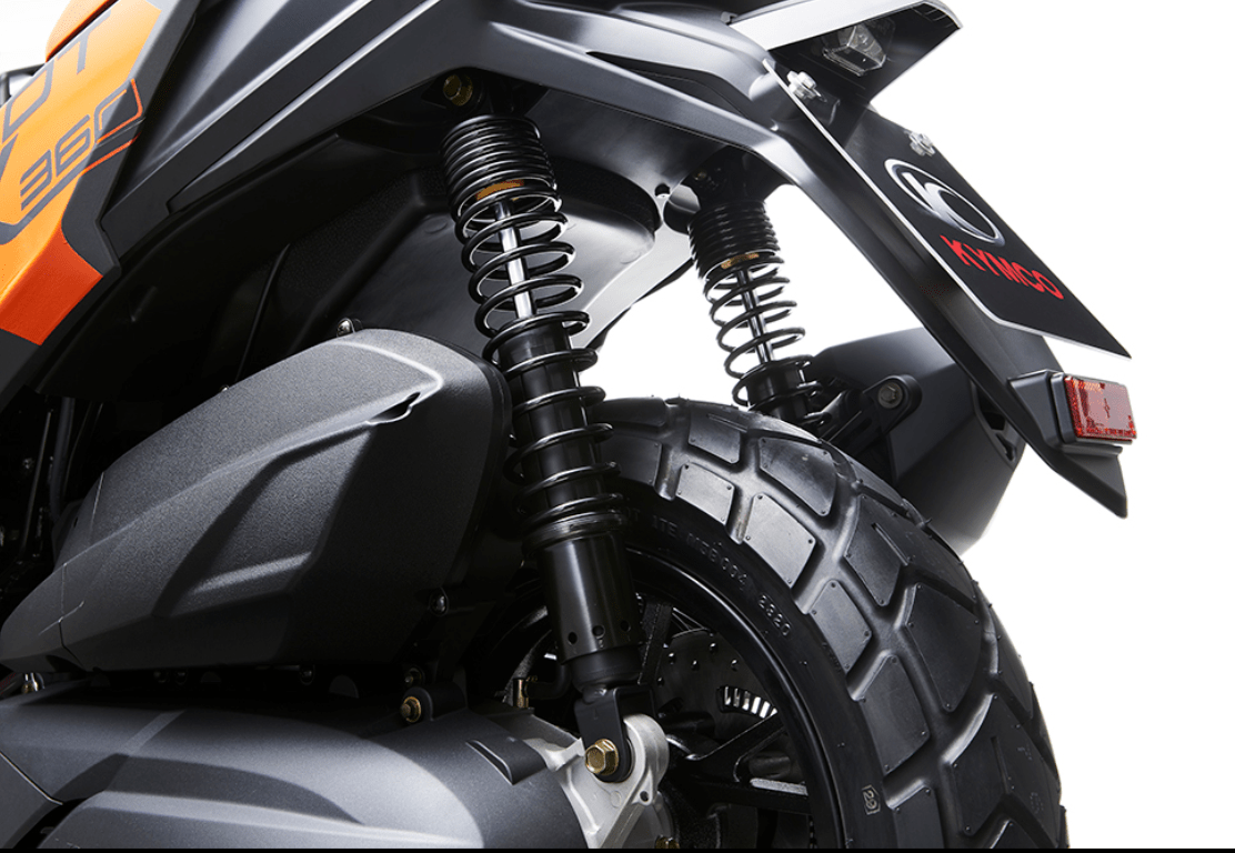 5-დონიანი რეგულირებადი ორმაგი უკანა ამორტიზატორიKymco DTX 360 300cc აღჭურვილია „Preload Suspension“-ით, რომელიც საშუალებას აძლევს მრბოლელს რეგულირებდეს ამორტიზატორის წინასწარ დაჭიმულობას. ეს ზრდის კომფორტსა და მართვის დინამიკას სხვადასხვა გზის პირობებში.