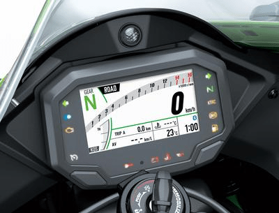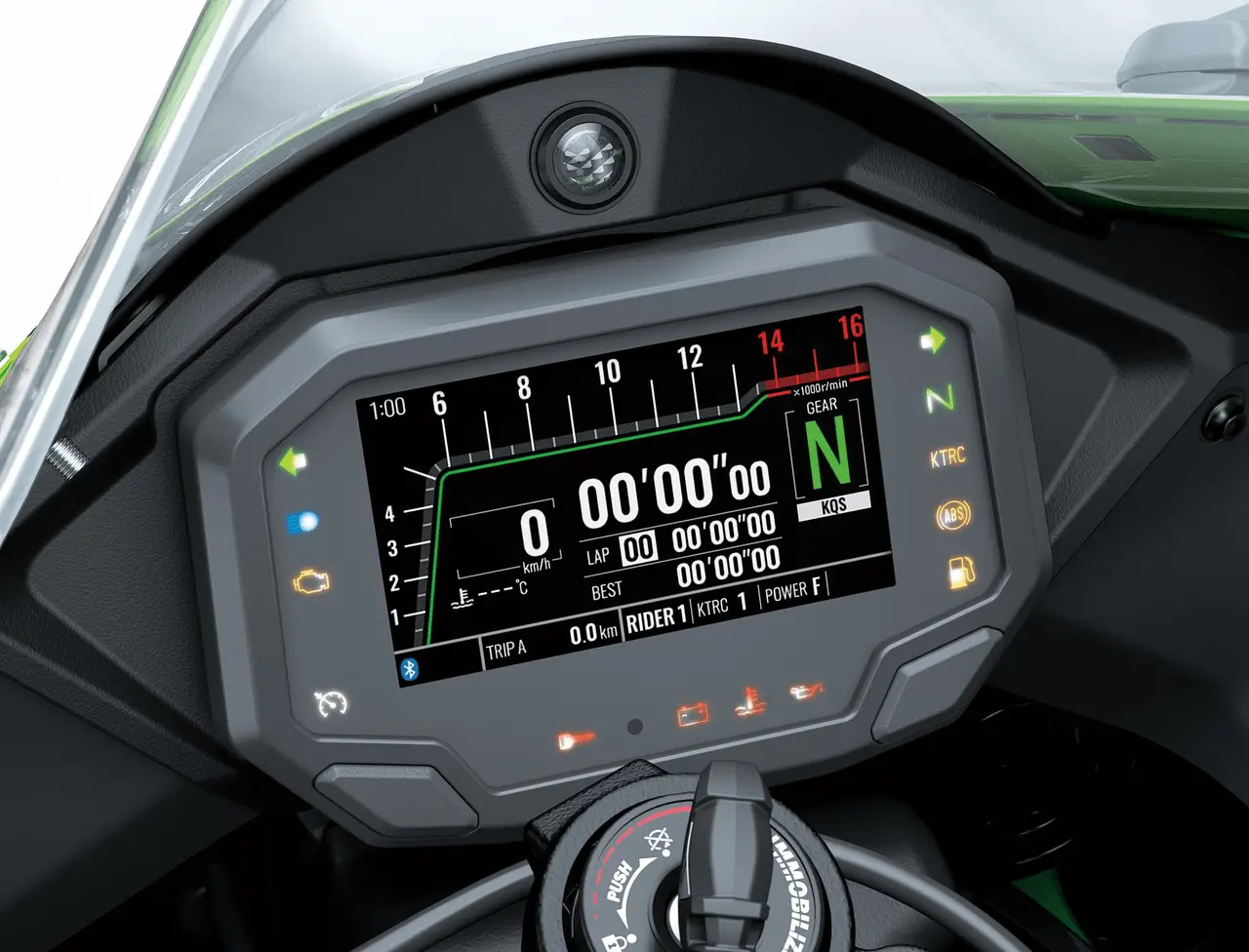 - Front brake Brembo dual semi-floating 330mm discs with dual radial mounted monobloc 4-piston calipers, Kawasaki Intelligent anti-lock Brake System (KIBS) (ABS only)