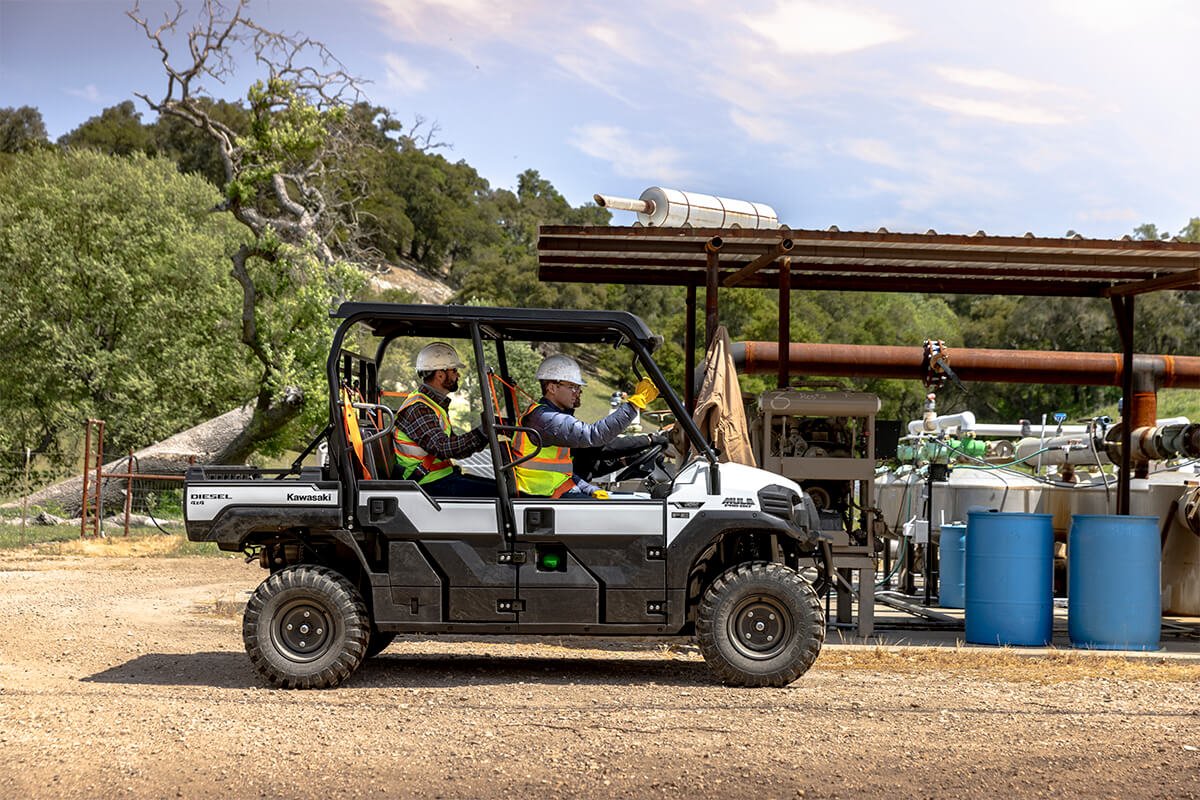 - ეკრანი Multi-function display includes digital speedometer, fuel gauge, odometer, hour meter, clock, dual trip meters, 2WD/4WD indicator, water temperature warning indicator, oil pressure warning indicator, glow plug indicator, CVT and EPS warning indicators, neutral, reverse and parking indicators, seatbelt reminder lamps
